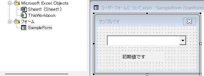 下記のように「SampleForm」というユーザーフォームを作るとします。