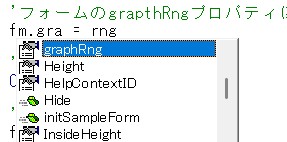 graphRngも②ではグローバル変数だったため、どこで使われているかわかりづらかったと思いますが、ここではfmオブジェクトのプロパティということが明示されているのでユーザーフォーム内で使うということがわかります。